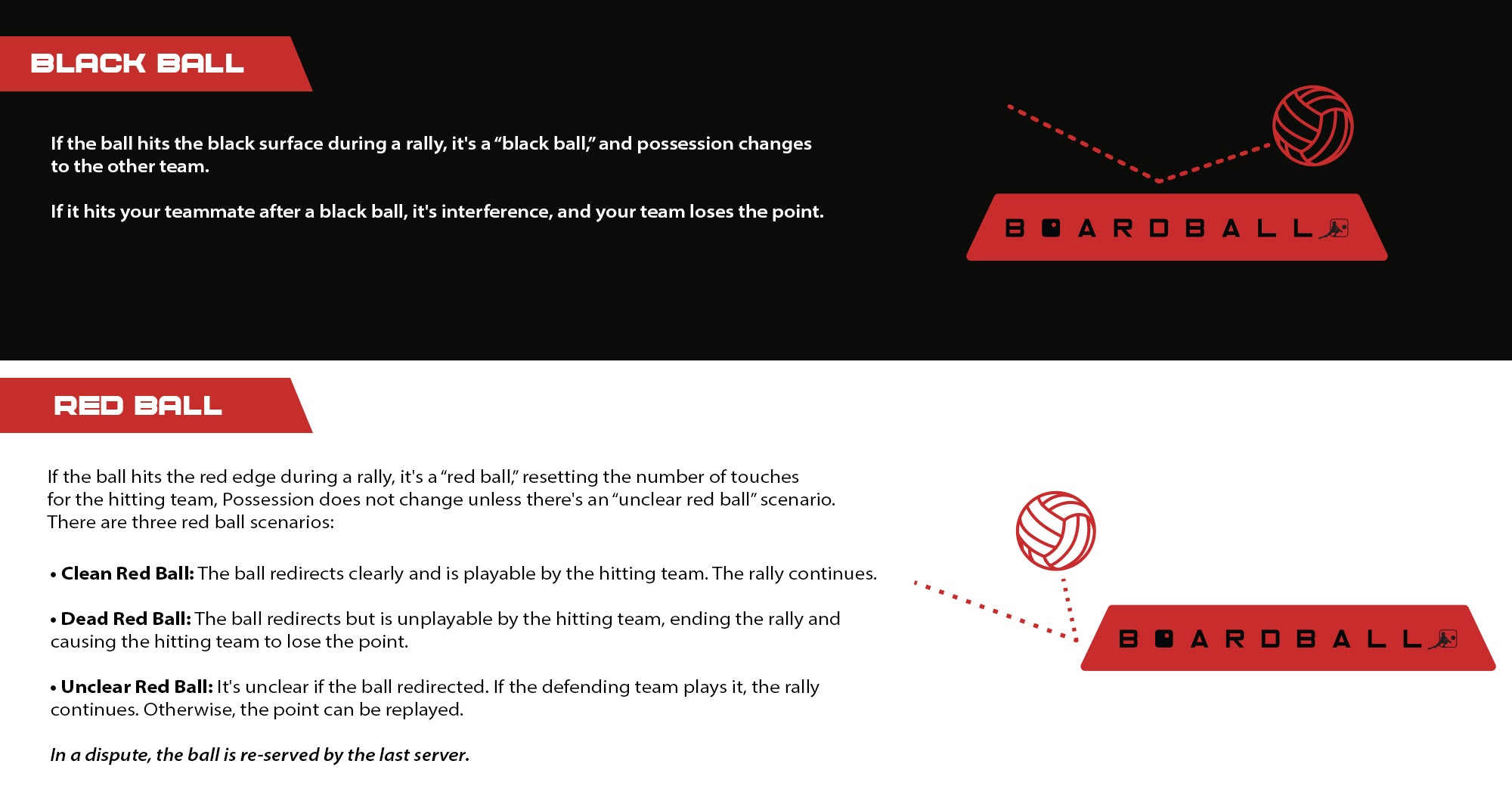- You get a maximum of 3 collective touches before the ball must be bounced back onto the black part of the board to the opposing team (see “black ball” below).