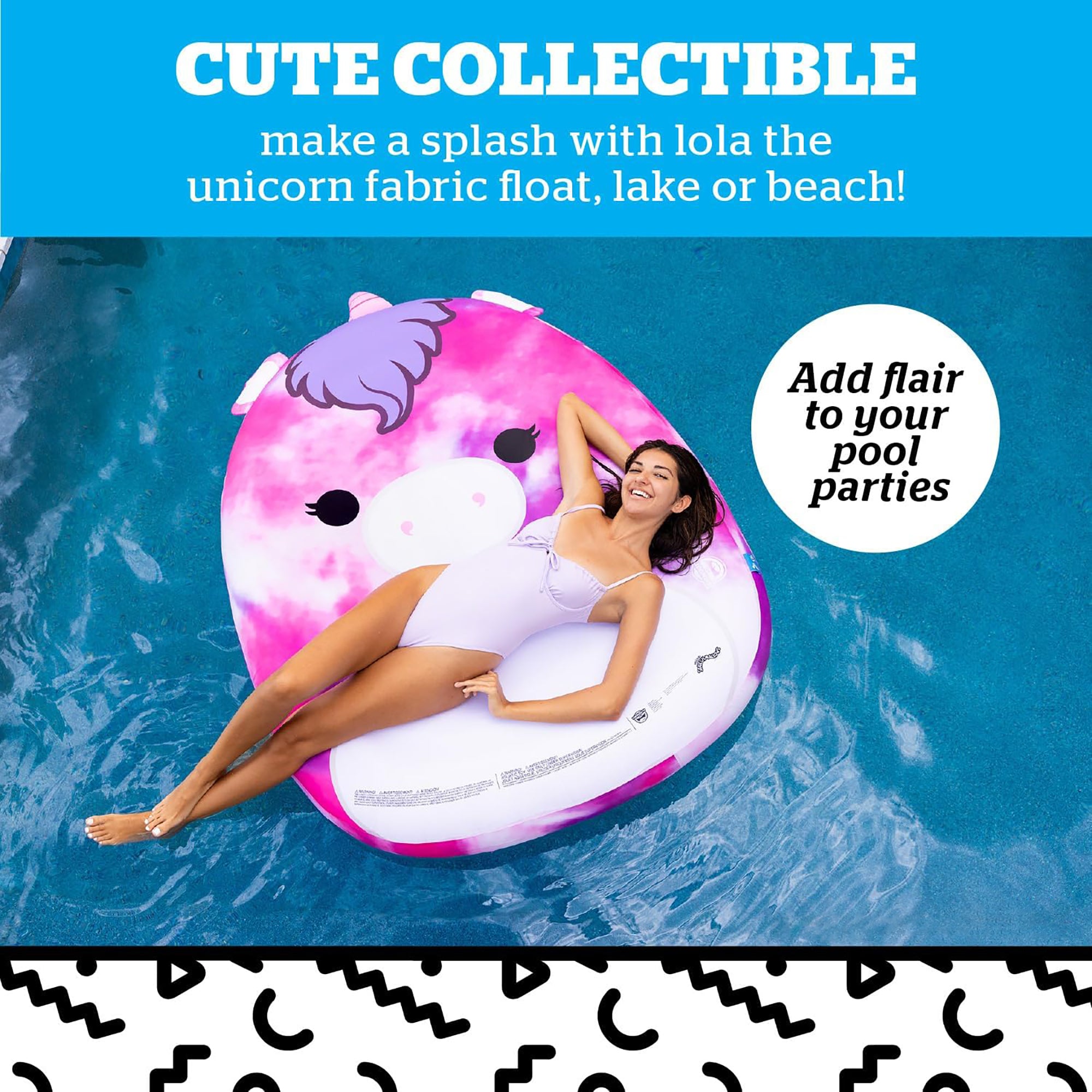 Drift into dreamy poolside relaxation with the irresistibly soft Lola the Unicorn Fabric Float. Wrapped in plush Squishmallows fabric, this oversized float combines vibrant personality with cozy comfort for ultimate summer lounging. Perfect for pool days, lake adventures, and sun-soaked selfies all season long